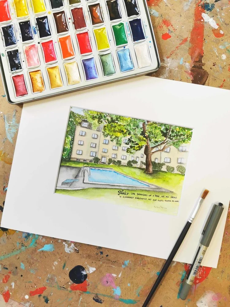 Mit Häusern verbindet man Schönes: Ich halte diese speziellen Erinnerungen als Zeichnung fest.